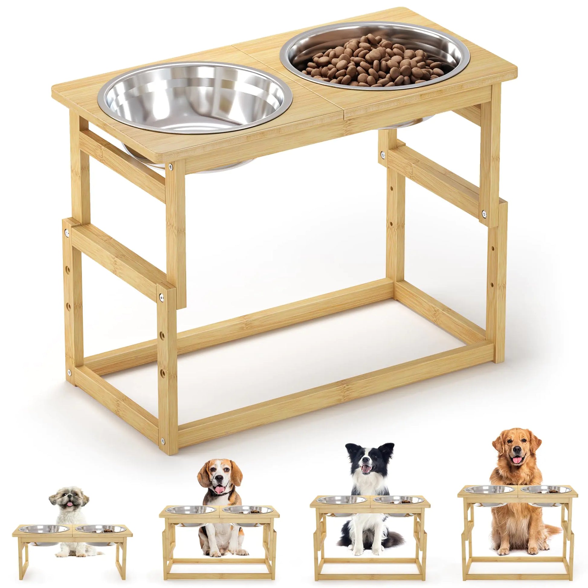 Elevated Dog Bowls for Large Dogs Bamboo Raised Dog Bowl Stand with 2 Large Water Food Bowls Wooden Elevated Raised Dog Bowls for Large Medium Small Sized Dogs (White Medium 2.5L)